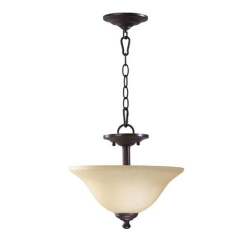 Spencer 2-Light Dual Mount can be hung as a pendant or attached to the ceiling as a semi-flush mount fixture.(2) 75W A19 MediumBulb Type: Incandescent Category Group: Pendants Category Sub Group: Up Pendants Collection: Spencer Finish: Toasted Sienna Height: 10.50 Number of Lights: 2 Pendant Type: Bowl Shaped Shade: Amber Scavo Glass Socket 1 Base: Medium Socket 1 Max Wattage: 75 Socket1 Max Wattage: 75 Socket1 Number Of Bulbs: 2 Style: Transitional Voltage: 120 Wattage: 75 Weight: 7.60 Width: 13.00
