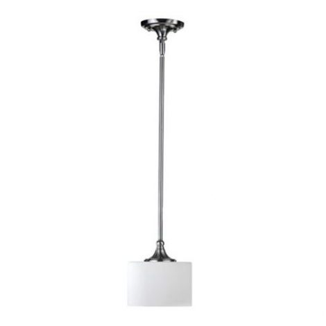 Need some transitional style to brighten up your living space. Look no further than this enchanting one light stem hung pendant from the Rockwood collection. A classic trim ring supports a bold stem ending in a hard-edged contemporary glass diffuser that encircles a brilliant 100 watt bulb. Offering directional light, this fixture will brighten up your home with timeless style and bright light for years to come.UL listed for Dry Locations (1) 100W MediumBulb Type: Incandescent Collection: Rockwood Diffuser Material: Glass Finish: Satin Nickel Height: 12 Number of Lights: 1 Pendant Type: Mini Shade: Satin Opal Socket 1 Base: Medium Socket 1 Max Wattage: 100 Style: Transitional Wattage: 100 Width: 7