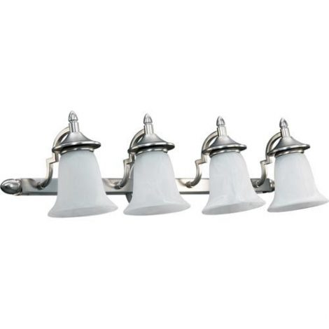 Create a distinctive silhouette with the curving arms and notched detailing of Coventry. The cool Satin Nickel finish, rounded finial and Faux Alabaster glass shades look at home in a contemporary interior designed with flair and enthusiasm.(4) 60W MediumBulb Type: Incandescent Collection: Coventry Extension: 7-3 4 Finish: Satin Nickel Height: 8 Light Direction: Down Lighting Number of Lights: 4 Socket 1 Base: Medium Socket 1 Max Wattage: 100 Style: Contemporary Modern Suggested Room Fit: Bathroom Wattage: 60 Width: 32-1 2