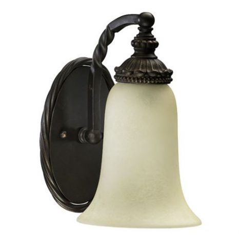 Crafted in the tradition of Old-World European design, the Alameda family recalls the romance of centuries-old architectural detailing. Scrolling, rope-wound arms add a touch of femininity to the rustic creation, and soft, ethereal light radiates from the waxy pillar candle-style light source. The oiled bronze ironwork contrasts with the ivory hue of the pillar candles to create rich depth and a warm sensory experience.Requires 1 100W Medium base bulb (Not Included) Amber Scavo glass UL listed for damp locationsBulb Type: Incandescent Collection: Alameda Extension: 8-1 2 Finish: Oiled Bronze Height: 9-1 2 Light Direction: Down Lighting Number of Lights: 1 Shade Material: Glass Socket 1 Base: Medium Socket 1 Max Wattage: 100 Style: Traditional Classic Suggested Room Fit: Bedroom, Entry Foyer, Office Wattage: 100 Width: 6-1 4