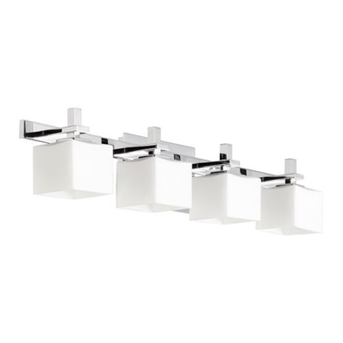 Rectangle backplateBulb Included: No Bulb Type: Halogen Dark Sky: No Diffuser Material: Glass Diffuser Type: Duplex Extension: 5-1 4 Finish: Chrome Height: 5-1 4 Number of Lights: 4 Lights Shade Finish: White Shade Material: Glass Shade Shape: Square Socket: G9 Style: Transitional Ul Type: Damp Wattage: 75 Weight: 8.7 Width: 27