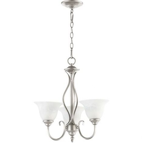 3 x 60 Watts mediumBulb Type: Fluorescent Collection: Spencer Dark Sky: No Diffuser Material: Glass Finish: Classic Nickel Height: 20 Number of Lights: 3 Lights Shade Finish: Faux Alabaster Socket: Medium Style: Transitional Suggested Room Fit: Living Room Type: Non Crystal Chandeliers Ul Type: Dry Wattages: 60 Weight: 9 Width: 20