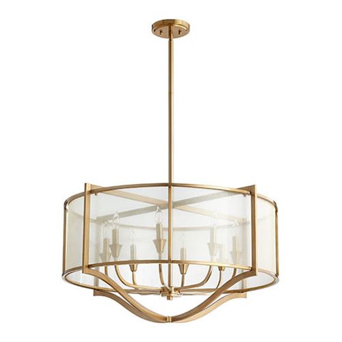 This 8 light Pendant from the Highline collection by Quorum will enhance your home with a perfect mix of form and function. The features include a Aged Brass finish applied by experts.(8) 60W Candelabra DryCollection: Highline Finish: Aged Brass Number of Lights: 8 Lights Pendant Type: Foyer Bulb Type: Incandescent Bulb Base: Candelabra Style: Transitional Wattage: 60 Height: 18 Width: 24 Weight: 26.60