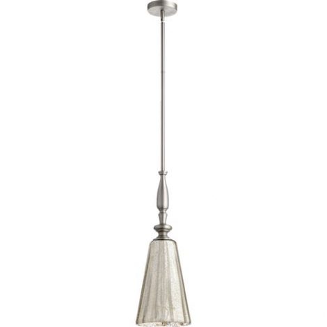 (1) 100W MediumBulb Type: Incandescent Dark Sky: No Diffuser Material: Glass Finish: Satin Nickel Height: 26 Light Watts: 100 Number of Lights: 1 Light Pendant Type: Mini Socket: Medium Style: Transitional Ul Type: Dry Weight: 7.8 Width: 8-1 4