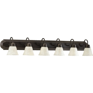 Quorum 6 Light Vanity With Linen Universal CollectionBulb Type: 6x100W Medium Base Extension Length: 7.75″: